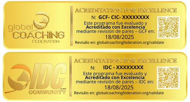 Todas las acreditaciones de cursos e instiuciones emitidas por Global Coaching Federation e International Development Community – GCF-IDC pós 10/2025 pueden verificarse en línea, garantizando la transparencia y la confianza. Así tienes la certeza de que estás eligiendo una formación que cumple con los más altos estándares internacionales de excelencia.